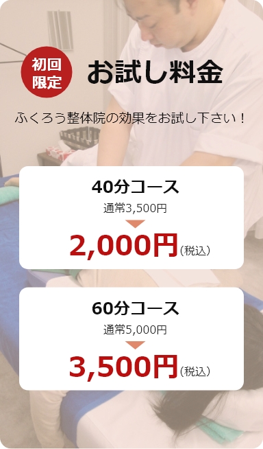 | 部位別整体コース(40分) | 3,500円(税込) |